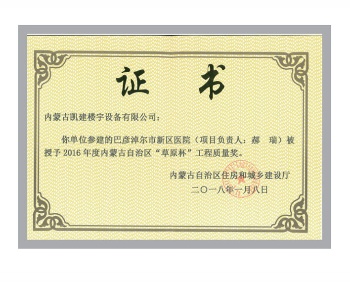 巴彦淖尔市新区医院荣获2016内蒙古自治区“草原杯”工程质量奖2018