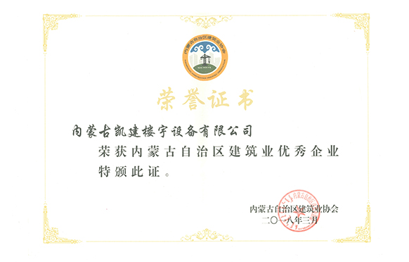 内蒙古自治区建筑业优秀企业2018